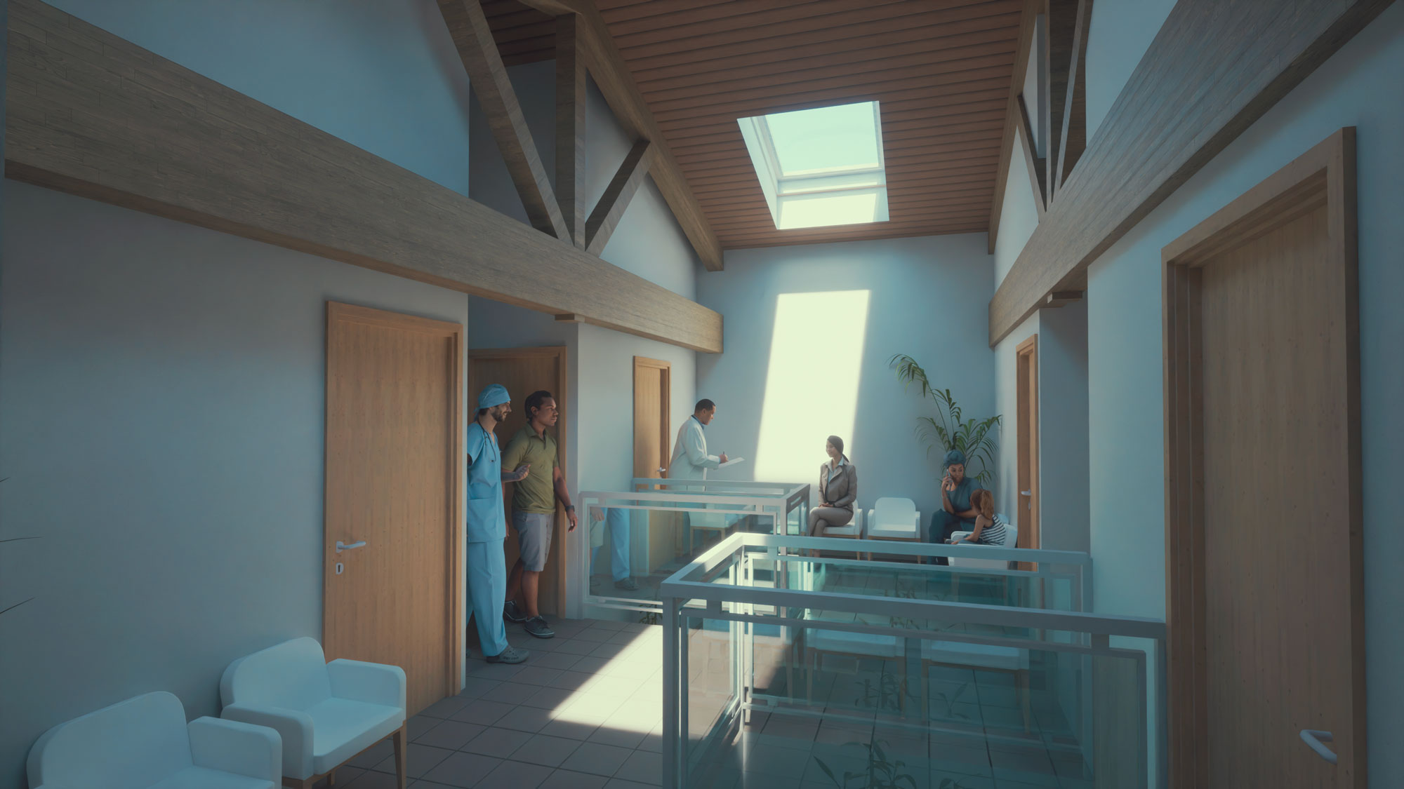 Chaque espace a été pensé pour le confort, la confidentialité et l’autonomie des praticiens : zones d’attente intégrées, circulations fluides, bureaux spacieux avec sanitaires privatifs et rangements intégrés. Une salle de repos avec terrasse complète l’ensemble, offrant un lieu de détente dédié aux équipes médicales.